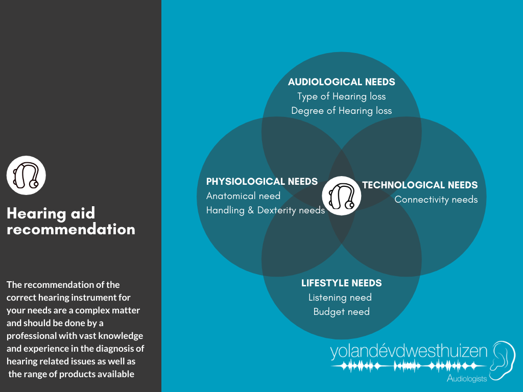 The recommendation of hearing instrument suited for you is essentially based on four main aspects:
